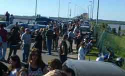 07.10.13 Un operativo de seguridad impidió ayer el paso a Uruguay de un numeroso grupo de manifestantes que se habían sumado al intendente de la localidad argentina de Gualeguaychú, Juan José Bahillo, reclamando por el aumento de producción aprobado por el gobierno uruguayo a la ex- Botnia.