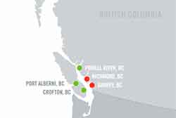 La fábrica de Port Alberni tiene dos máquinas de papel y produce papel recubierto ligero (LWC) y de directorio. La planta tiene una capacidad de producción de 340.000 toneladas por año de papeles especiales.